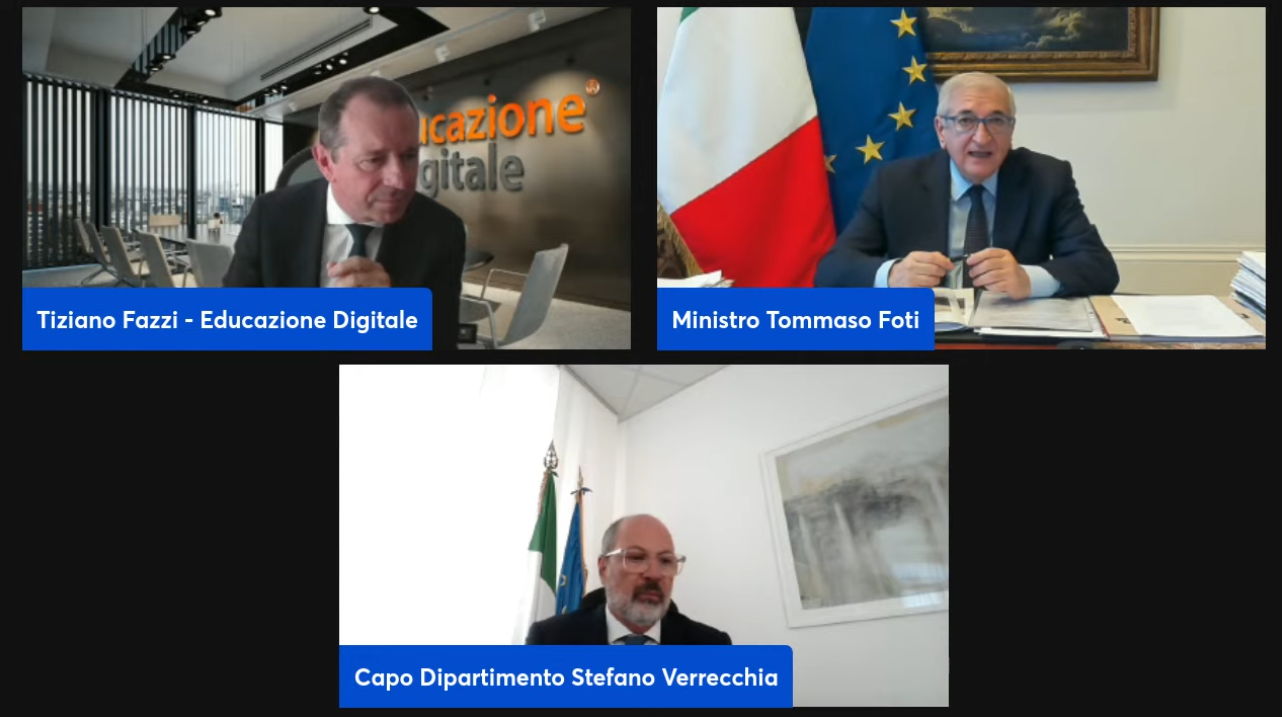 Il 5 novembre alle ore 11 si è svolto il webinar L’ora di Europa, promosso dal Dipartimento per gli Affari Europei in collaborazione con Educazione Digitale. Una conversazione con il Ministro Tommaso Foti per studenti e docenti delle scuole secondarie di secondo grado sulle sfide, le opportunità e le prospettive dell'Italia in Europa.